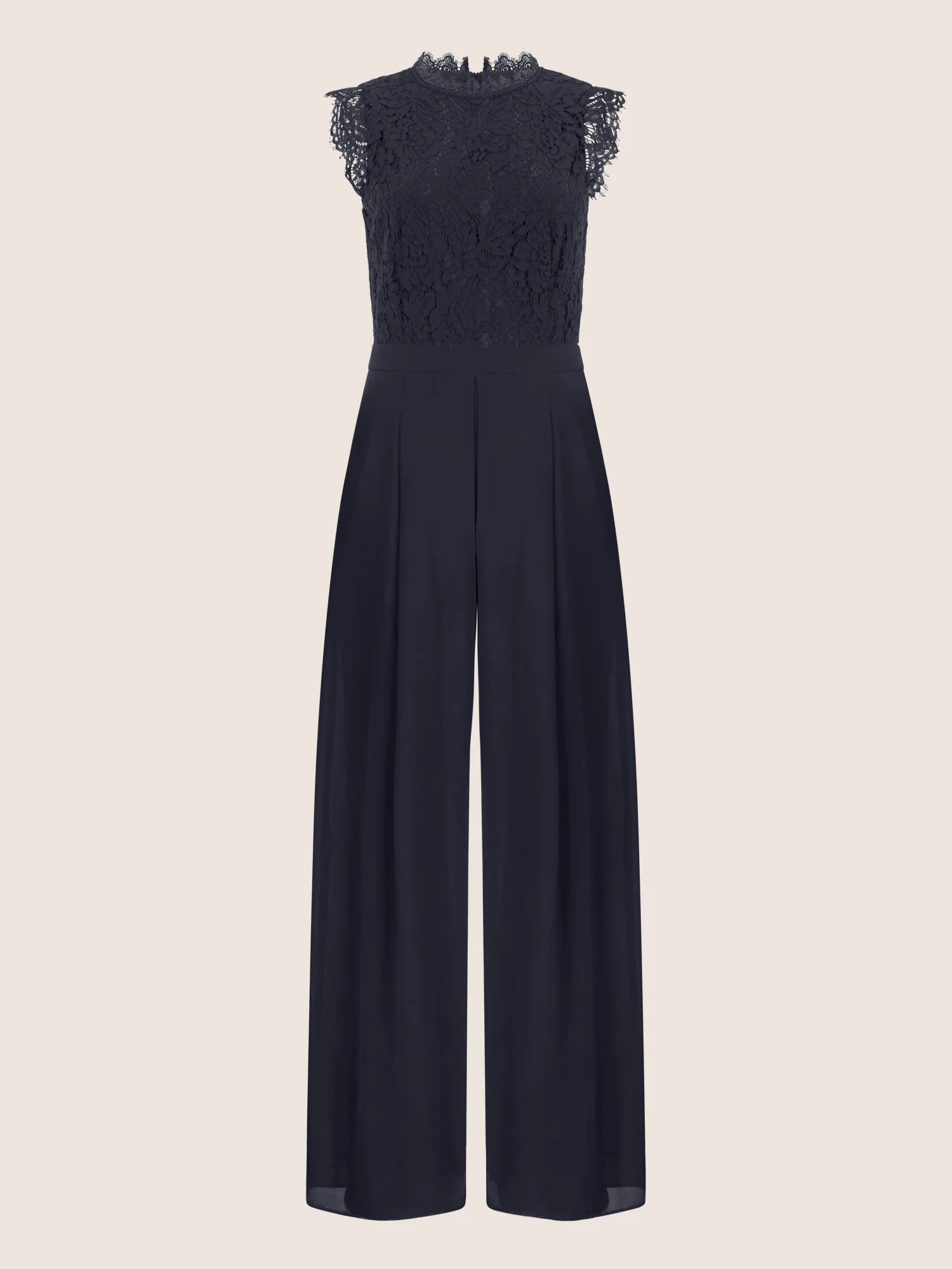 APART Abendoverall mit Spitzentop und weitem Bein | nachtblau
