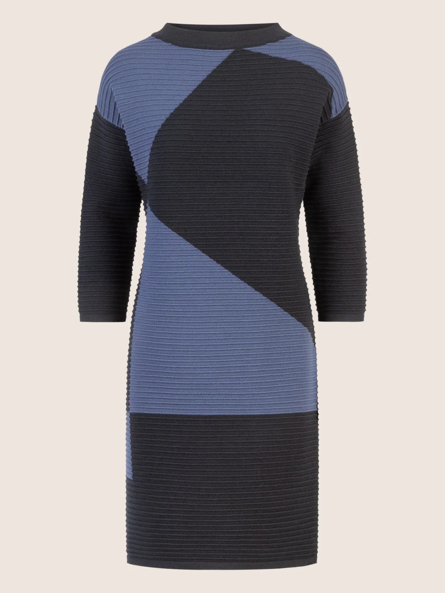 APART Colorblocking Strickkleid mit grafischem Strukturmuster | nachtblau-dunkelblau