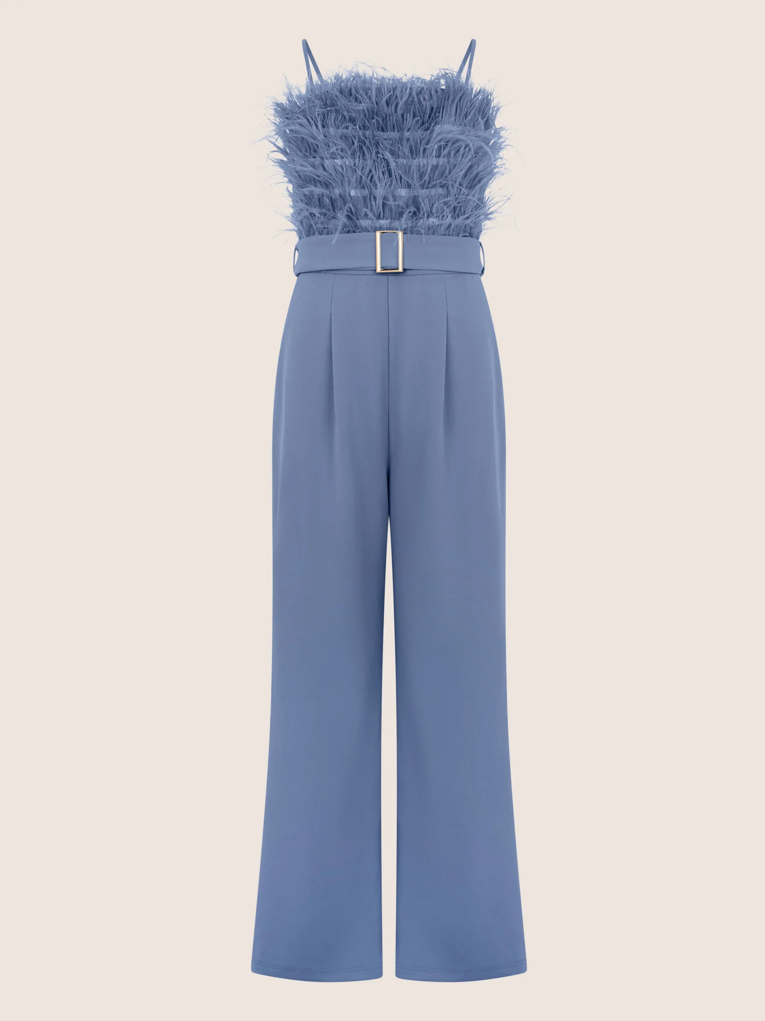 APART Federbesetzter Abendoverall mit Gürtel | rauchblau