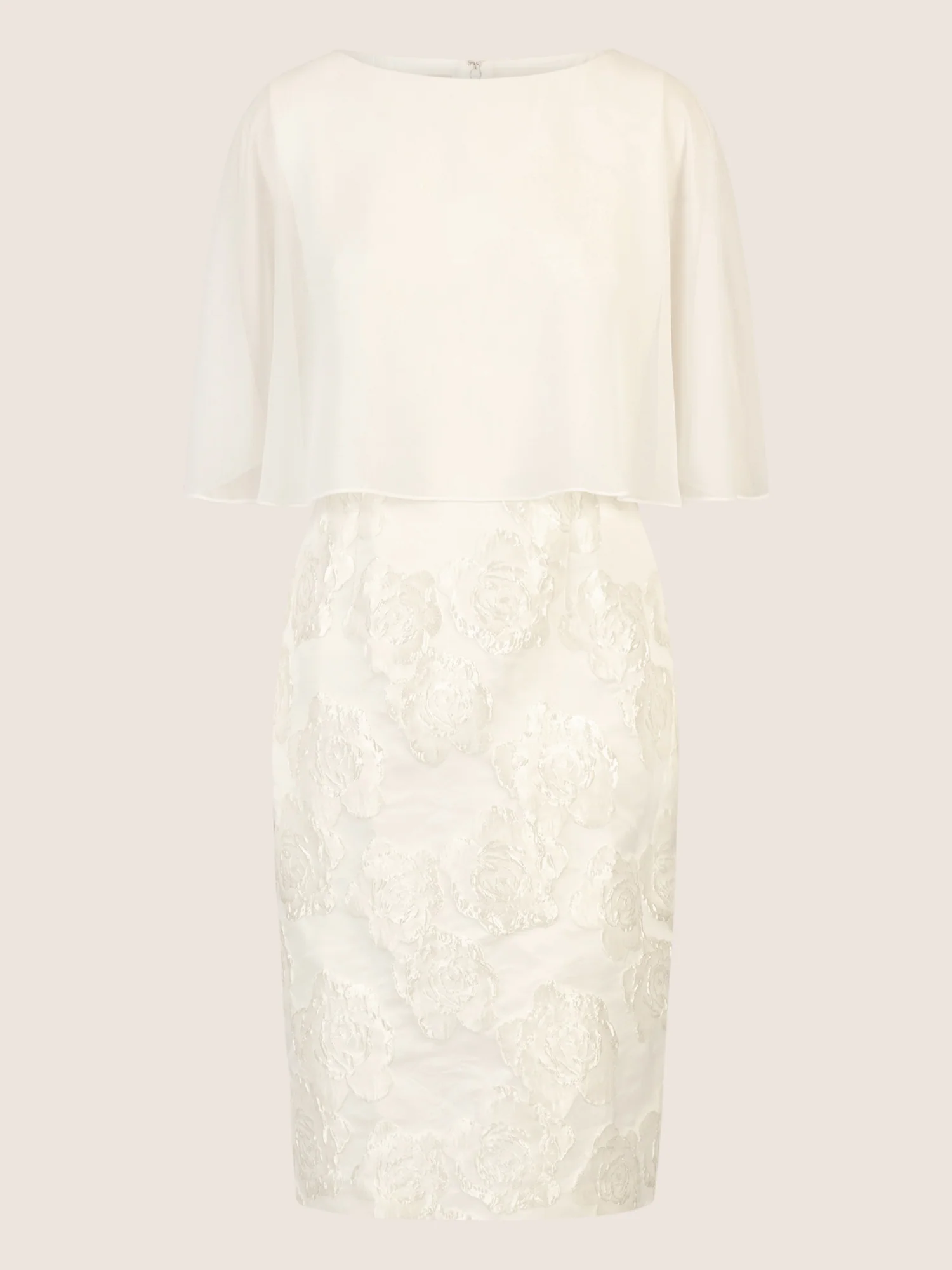 APART Jacquardkleid mit Chiffoncape mit floraler Struktur und Chiffoncape | creme
