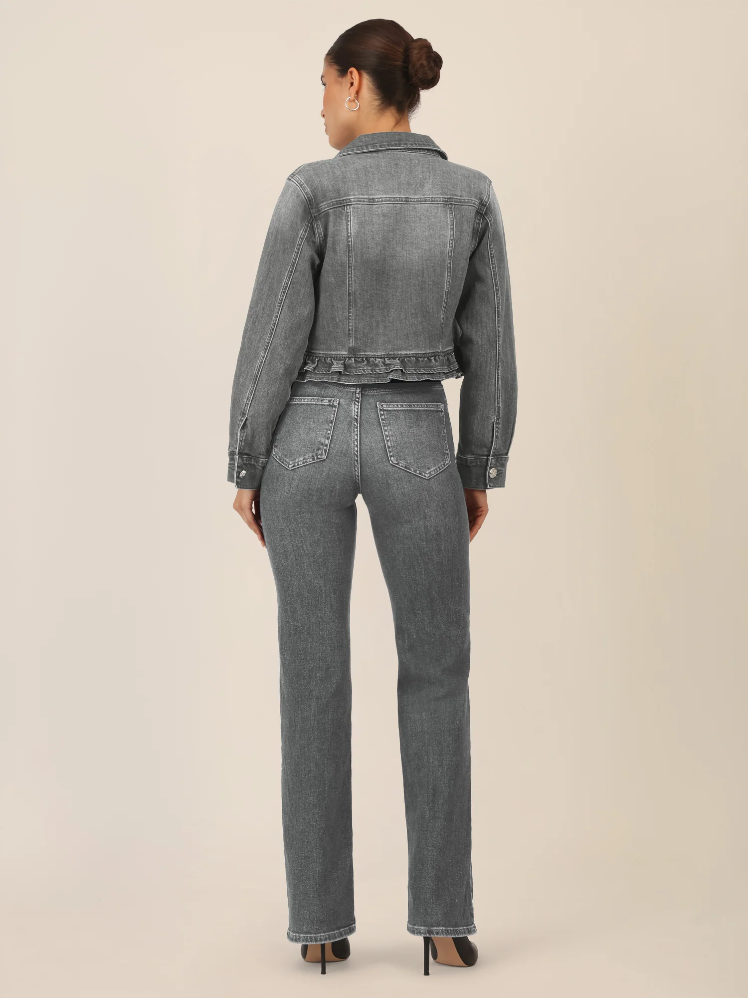 APART Jeansjacke mit Rüschen | grau
