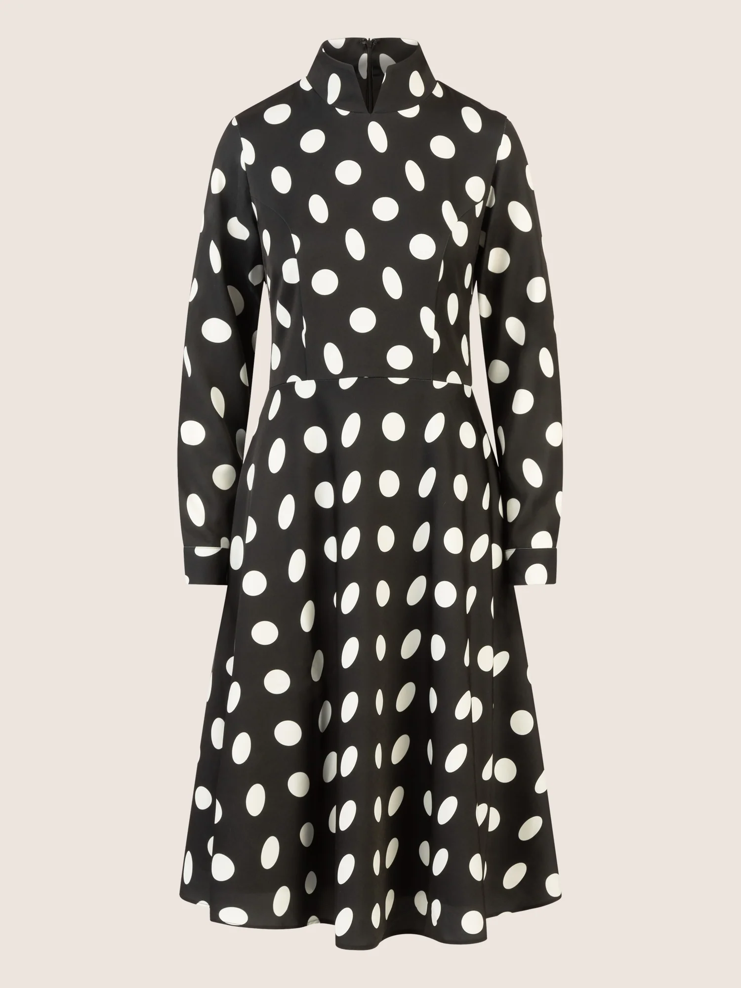 APART Kleid mit Stehkragen und Polka-Dots | schwarz-creme