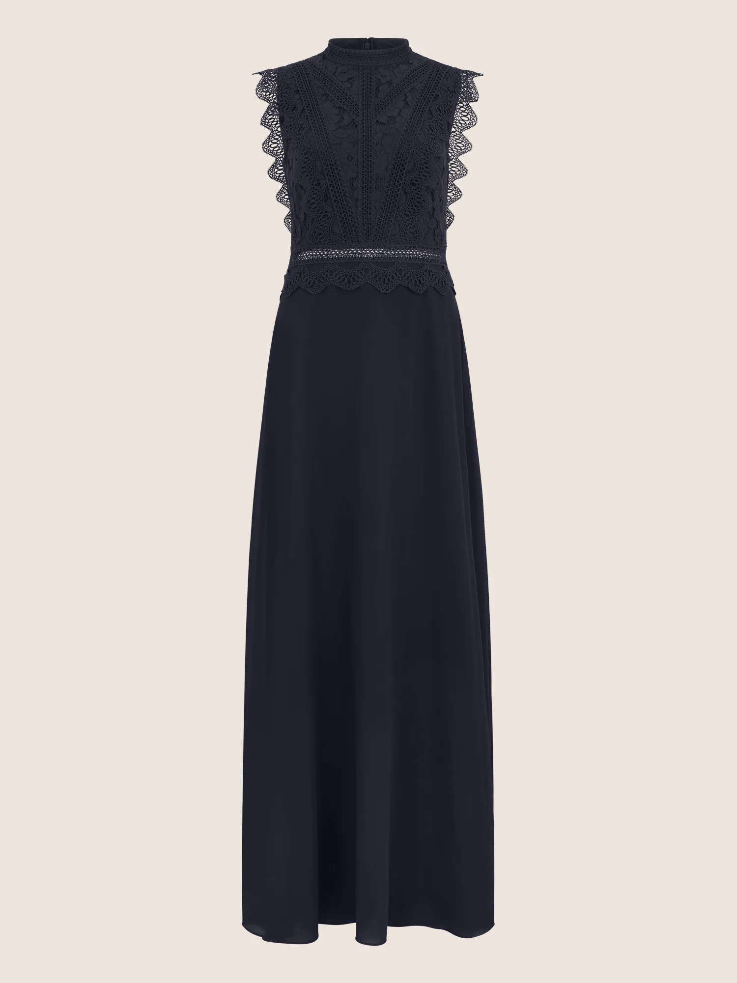 APART Maxikleid mit Häkelspitze und Stehkragen | nachtblau