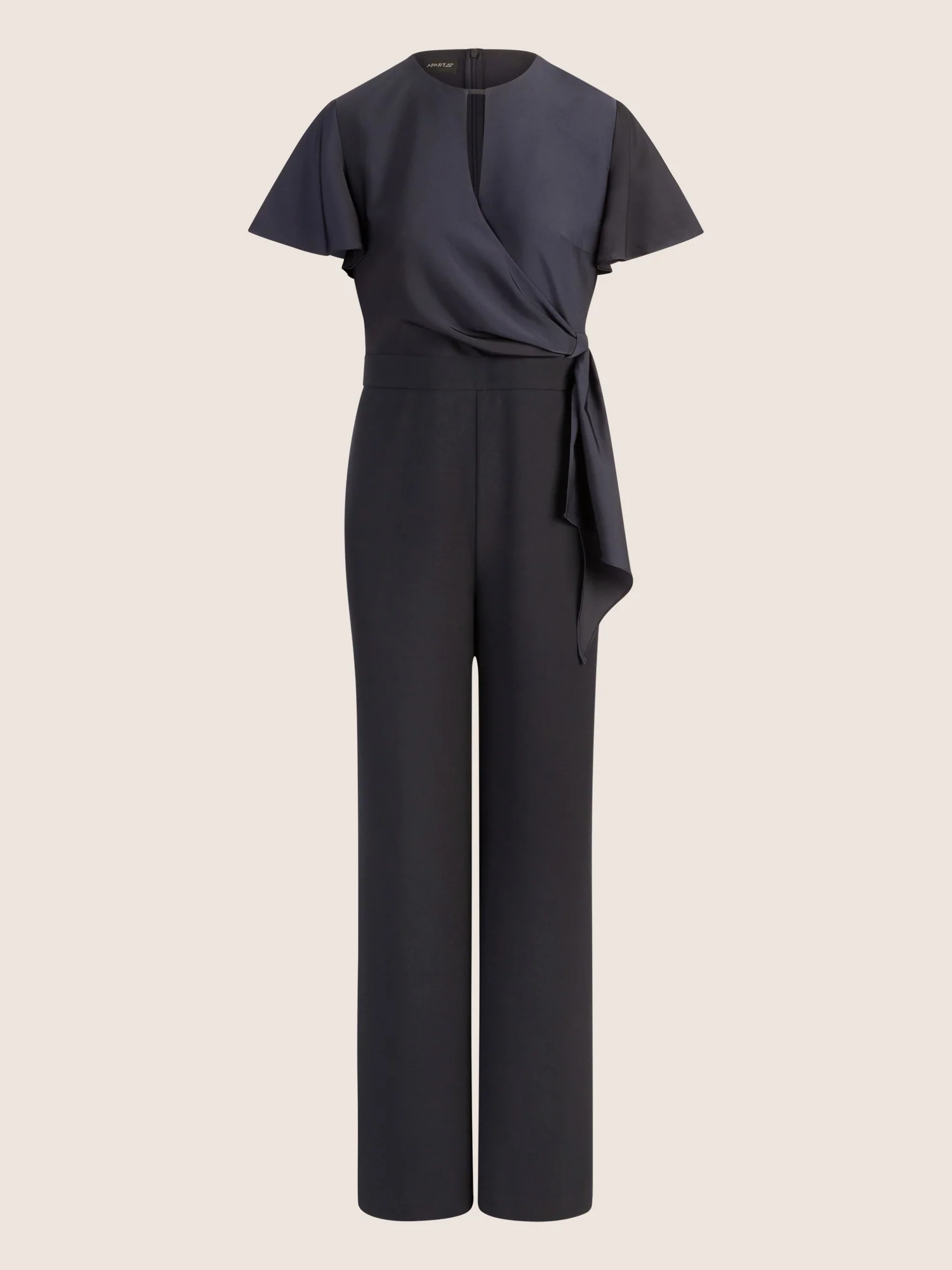 APART Overall im Materialmix aus Satin und mattschimmerndem Krepp | nachtblau