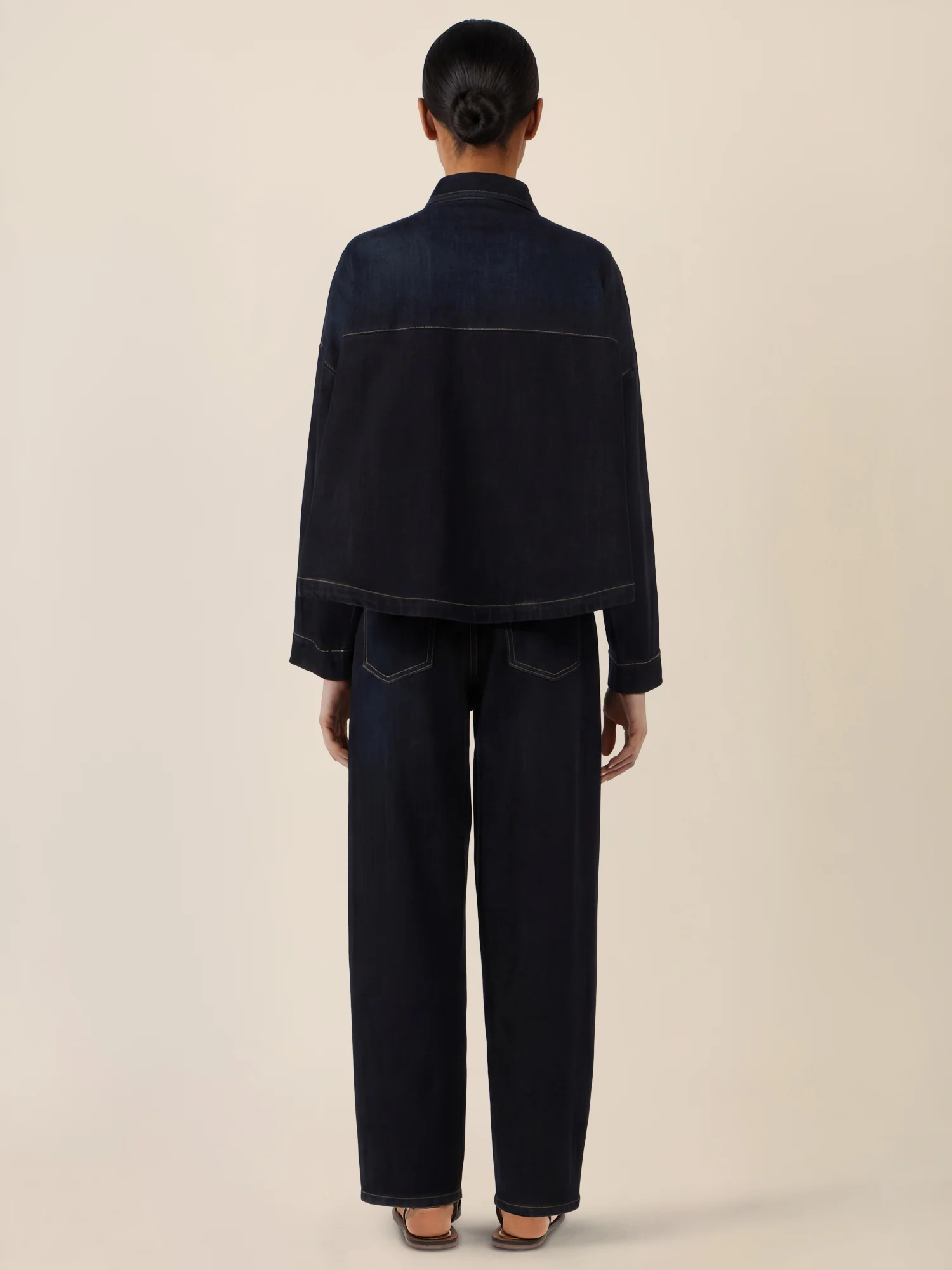 APART Oversized Jeansjacke mit Kontrastnähten | dunkelblau