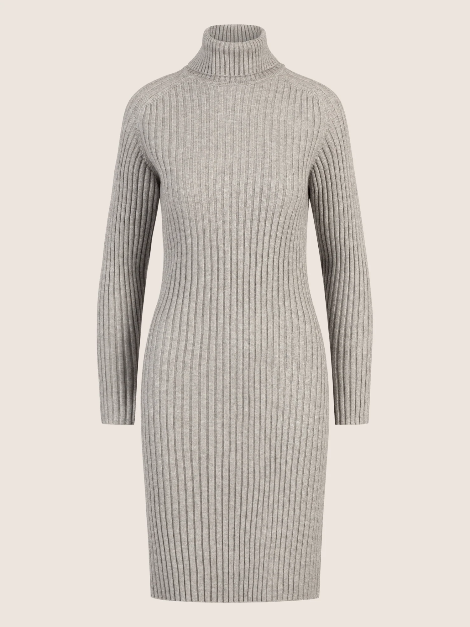 APART Rippenstrickkleid mit Rollkragen | graumeliert
