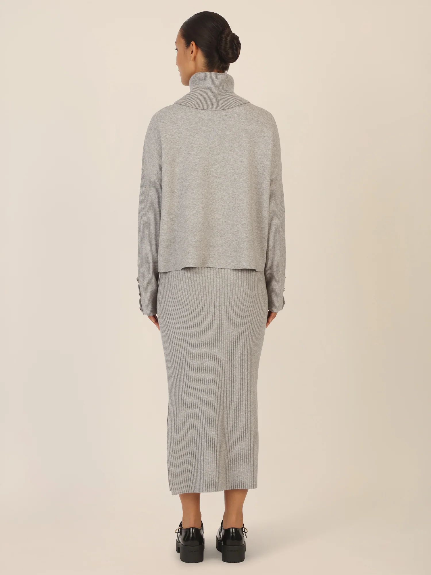 APART Rippenstrickrock in Midi Länge | graumeliert