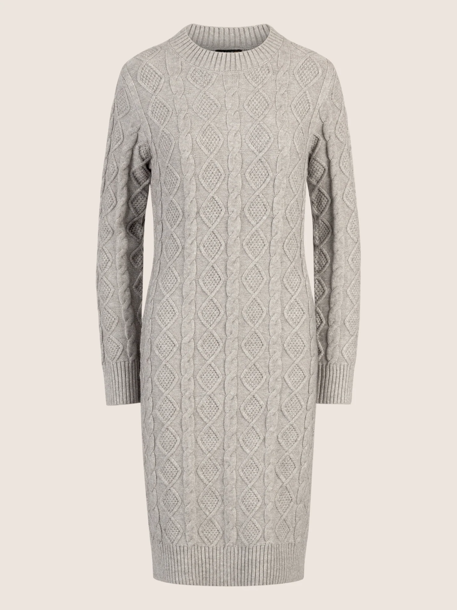 APART Strickkleid mit Strukturmuster und Rundhalsausschnitt | graumeliert