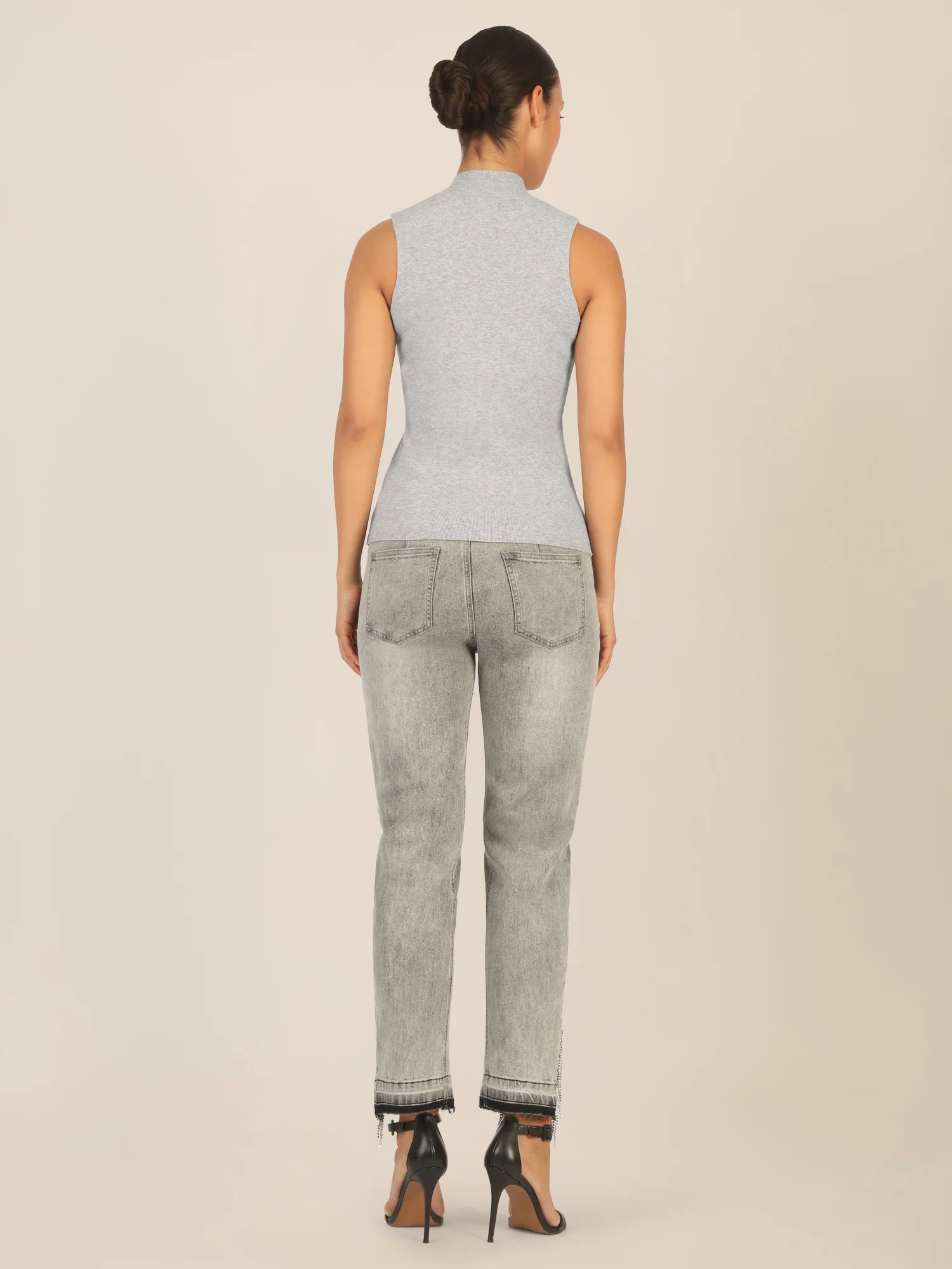 APART Stricktop mit Stehkragen und Ärmellos-Design | graumeliert