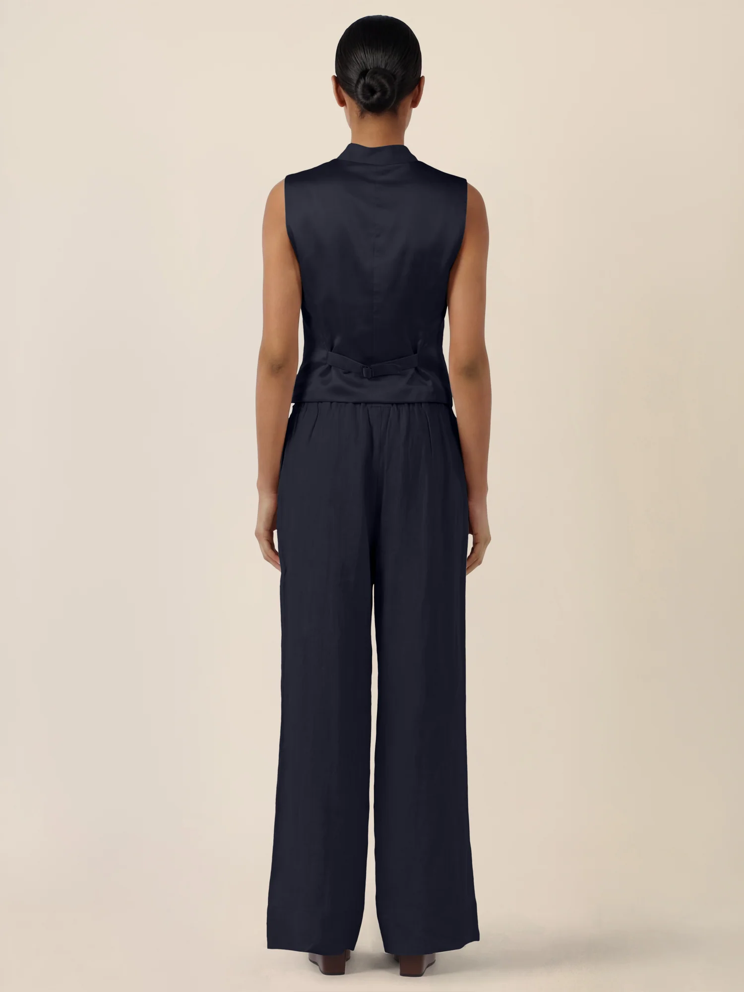 APART Weite Leinenhose mit Gürtel-Detail | nachtblau